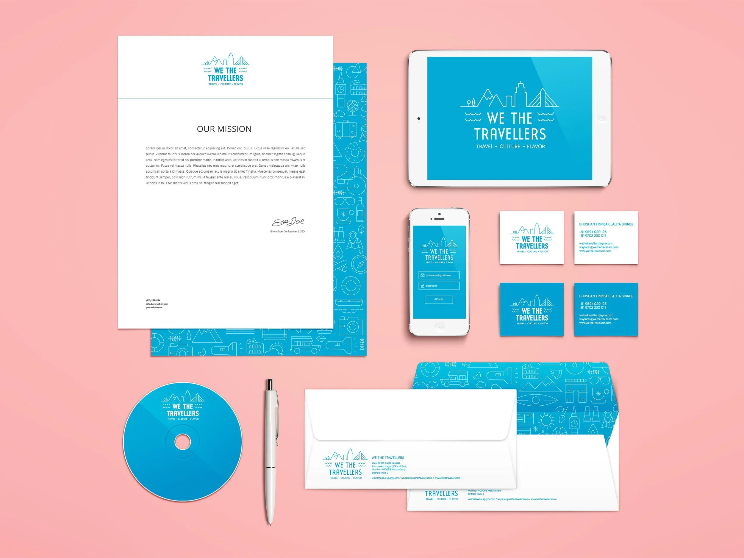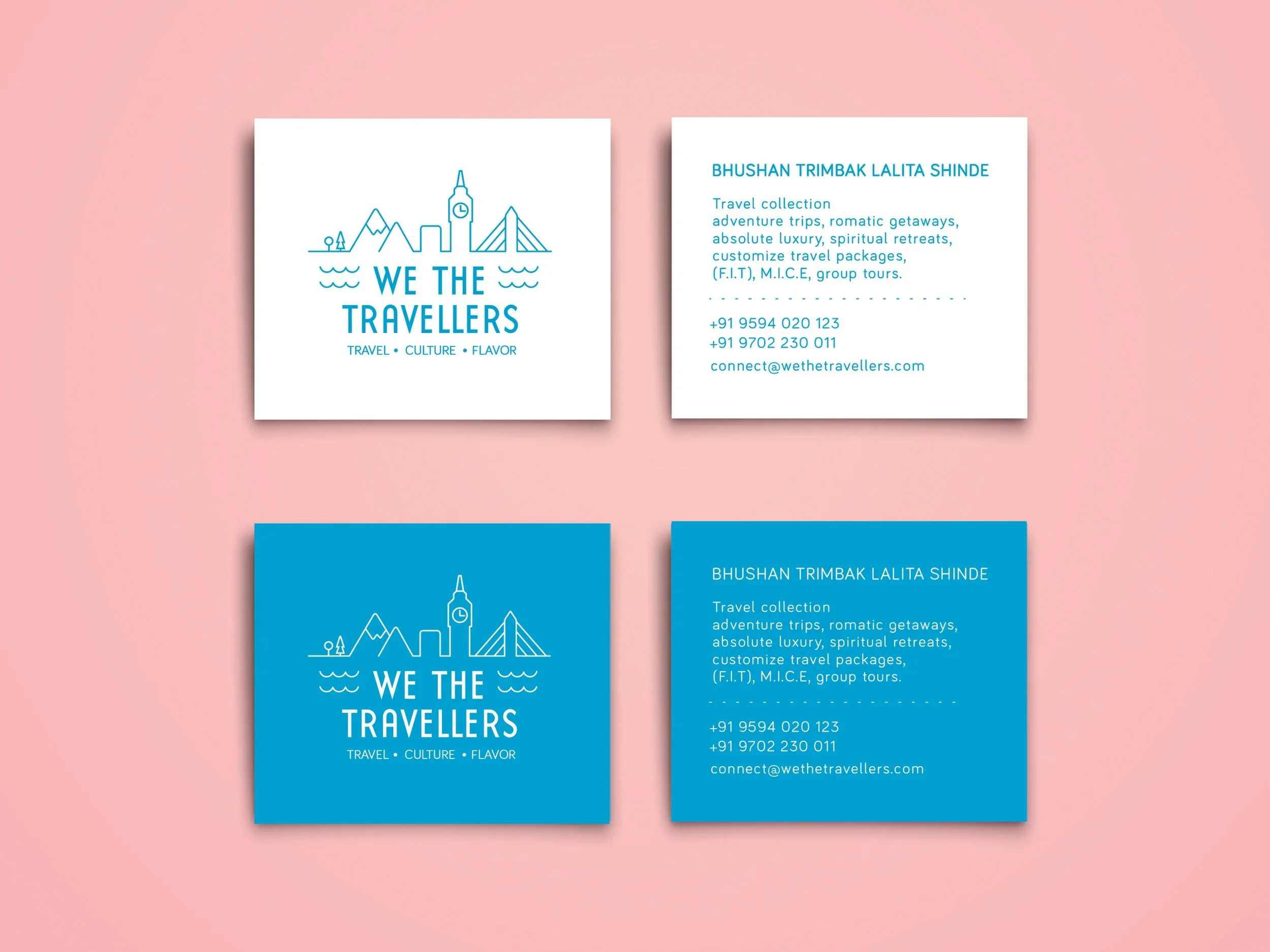 We The Travellers is a vibrant brand identity that captures the joy of exploration and connection. The design combines minimalist line illustrations of mountains, cities, and bridges to represent the diversity of travel experiences. Set against a bright blue background, the clean white lines and bold typography evoke clarity, openness, and a sense of movement — reflecting the brand’s spirit of adventure, culture, and flavour.